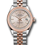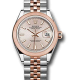 28mm Everose Rolesor case comprised of a 904L steel monobloc middle case, screw-down steel back, 18K Everose gold screw-down crown with twinlock double waterproofness system, 18K Everose gold domed bezel, scratch-resistant sapphire crystal with cyclops lens over the date and double anti-reflective coating, sundust dial, index hour markers, Rolex calibre 2236 automatic movement with center hour, minute and seconds hands, instantaneous date with rapid setting, and stop-seconds for precise time setting, Everose Rolesor Jubilee bracelet comprised of a combination of 904L steel and 18K Everose gold in five-piece links, concealed folding Crownclasp buckle. Waterproof to 100 meters.
