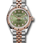 Rolex Steel and Everose Gold Rolesor Lady-Datejust 28 Watch - Fluted Bezel - Olive Green Diamond Dial - Jubilee Bracelet - 279171 ogdj