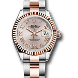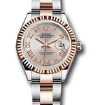 Rolex Steel and Everose Gold Rolesor Lady-Datejust 28 Watch - Fluted Bezel - Sundust Roman Dial - Oyster Bracelet - 279171 suro