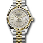 Rolex Steel and Yellow Gold Rolesor Lady-Datejust 28 Watch - Fluted Bezel - Silver Diamond Star Dial - Jubilee Bracelet - 279173 s9dix8dj