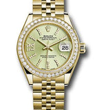 Rolex Yellow Gold Lady-Datejust 28 Watch - 44 Diamond Bezel - Linden Green Strip Diamond Index Dial - Jubilee Bracelet - 279138RBR lings36dix8dj
