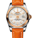 Breitling Galactic 29 Sleek Watch - Stainless Steel - Mother-Of-Pearl Dial - Orange Calfskin Leather Strap - Tang Buckle - C72348121A1X1