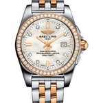 29.00 mm steel and rose gold case, 8.90 mm thick, non screw-locked crown with two gaskets, gem-set bezel, cambered sapphire crystal with glareproof treatment on both sides, pearl diamond dial, Breitling 72 thermocompensated SuperQuartz movement, two-tone bracelet. Water resistant to 100 m (330 ft).