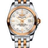 29.00 mm steel and rose gold case, 8.90 mm thick, non screw-locked crown with two gaskets, tungsten carbide bezel, cambered sapphire crystal with glareproof treatment on both sides, pearl diamond dial, Breitling 72 thermocompensated SuperQuartz movement, steel and rose gold bracelet. Water resistant to 100 m (330 ft).