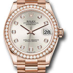 Rolex Everose Gold Datejust 31 Watch - Diamond Bezel - Silver Diamond Dial - President Bracelet - 278285RBR sdp