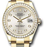 Rolex Yellow Gold Datejust 31 Watch - Diamond Bezel - Silver Diamond Dial - Oyster Bracelet - 278288RBR sdo