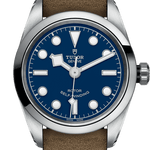 Bringing the technical sophistication of a tool-watch to smaller scale, the Black Bay 32 is a refined, elegant option for slim wrists. This elegant yet functional iteration of the TUDOR icon features a blue lacquered dial surrounded by a smooth, polished steel case. Its leather strap is rendered in an aged, beige hue for a classic touch.