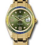 Rolex Yellow Gold Datejust Pearlmaster 39 Watch - 48 Blue To Green Gradient Baguette-Cut Sapphires Bezel - Olive Green Diamond Dial - 86348SABLV