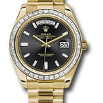 Rolex Yellow Gold Day-Date 40 Watch - Yellow Gold Bezel - Black Baguette Diamond Dial - President Bracelet - 228398TBR bkbdp