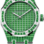 | CASE DETAIL | 18-carat white gold case set with baguette-cut tsavorites, glareproofed sapphire crystal and caseback. |