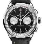Breitling Premier B01 Chronograph 42 Watch - Stainless Steel - Black Dial - Anthracite Calfskin Leather Strap - Tang Buckle - AB0118371B1X2