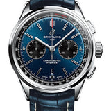 Breitling Premier B01 Chronograph 42 Watch - Stainless Steel - Blue Dial - Blue Alligator Leather Strap - Folding Buckle - AB0118221C1P1