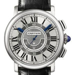 42mm 18K white gold case, transparent back, slate-grey and metal-grey dial with central display of function complication, manual winding calibre 9907 MC movement with chronograph function, alligator strap with 18K gold deployant buckle. Water resistant to 30 meters.