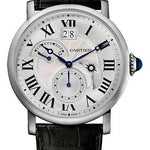 42mm steel case, 11.96mm thick, sapphire back, fluted crown with a synthetic cabochon-shaped spinel, silvered guilloche, steel bezel, sapphire crystal, silver dial set with apple-shaped hands in blued steel, caliber 1904-FU MC automatic movement with large date at 12 o'clock, retrograde second time zone at 10 o'clock, day/night indicator at half past three, small seconds at 6 o'clock,, black alligator skin strap, folding buckle. Water resistant to 3 bar.