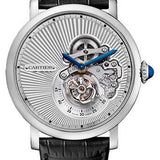 46mm 18K white gold case, 12.73mm thick, sapphire back, beaded 18K white gold crown set with a blue sapphire cabochon, 18K white gold bezel, sapphire crystal, silver dial, caliber 9458 manual-winding movement with blued-steel sword-shaped hands, approximately 50 hours of power reserve, black alligator skin strap, double adjustable folding buckle. Water resistant to 3 bar.