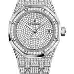37 mm 18K white gold case set with 860 brilliant-cut diamonds (includes bracelet), 9.8 mm thick, 18K white gold dial set with 275 brilliant-cut diamonds and 25 baguette-cut diamond hour markers, Calibre 3120 selfwinding movement with hours, minutes, center seconds and date, approximately 60 hours of power reserve, 18K white gold diamond bracelet, AP folding buckle. Water resistant to 50 m.