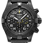 50.00 mm Breitlight case, 16.95 mm thick, screw-locked crown with two gaskets, unidirectional ratcheted bezel, cambered sapphire crystal with glareproof treatment on both sides, volcano black dial, Breitling B12 (Manufacture) self-winding movement, approximately 70 hrs of power reserve, black military strap, tang buckle. Water resistant to 100 m (330 ft).