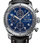 Breitling Aviator 8 Chronograph 43 Watch - Stainless Steel - Blue Dial - Black Calfskin Leather Strap - Tang Buckle - A13316101C1X1
