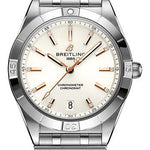 36.00 mm stainless steel case, non screw-locked crown with two gaskets, unidirectional ratcheted bezel, white diamond dial, Breitling 10 self-winding movement, approximately approx. 42 hours of power reserve, metal bracelet. Water resistant to 100 m (330 ft).