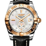 36.00 mm steel and rose gold case, 12.30 mm thick, non screw-locked crown with two gaskets, unidirectional ratcheted bezel, cambered sapphire crystal with glareproof treatment on both sides, pearl diamond dial, Breitling 37 self-winding movement, approximately 42 hours of power reserve, black sahara strap. Water resistant to 100 m (330 ft).
