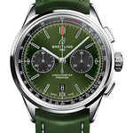 Breitling Premier B01 Chronograph Bentley Watch - 42mm Steel Case - Green Dial - Green Leather Strap - AB0118A11L1X1