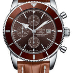 46.00 mm stainless steel case, 16.35 mm thick, screw-locked crown with two gaskets, unidirectional ratcheted rotating bezel, cambered sapphire crystal with glareproof treatment on both sides, copperhead bronze dial, Breitling 13 selfwinding movement, approximately 48 hrs of power reserve, gold croco strap, folding buckle. Water resistant to 200 m (660 ft).