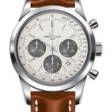 Breitling Transocean Chronograph Watch - Steel - Mercury Silver Dial - Gold Leather Strap - Tang Buckle - AB015212/G724/433X/A20BA.1