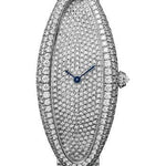 47 mm x 21 mm rhodiumized 18K white gold case, rhodiumized 18K white gold beaded crown set with a brilliant-cut diamond, sapphire crystal, caliber 1917 MC manual movement, rhodiumized 18K white gold bracelet set with brilliant-cut diamonds. Water resistant to 3 bar (approx. 30 meters/100 feet).