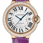 Large size (42.1mm) 18K rose gold case, diamond bezel, guilloche and lacquered dial with Roman numerals and date at 3 o'clock, automatic winding Cartier calibre 049 movement, alligator strap with 18K gold deployant buckle. Water resistant to 30 meters.
