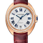 Cartier Cle De Cartier Watch - 35 mm Pink Gold Diamond Case - Diamond Bezel - Silver Dial - Bordeaux Alligator Strap - WJCL0013