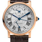 40.5 mm by 13 mm thick 18K pink gold case, sapphire back, beaded crown set with sapphire cabochon, sapphire crystal, white dial with silvered open-work grid, Roman and Arabic numerals with blued hands, caliber 9422 MC automatic movement with perpetual calendar complication, days indicated by a retrograde hand, months and leap years in a counter at 12 o'clock, brown alligator strap with 18K pink gold buckle, buckle double deployant. Water resistant to 30 meters.