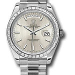 Rolex 950 Platinum Day-Date 40 Watch - Bezel - Silver Strip Motif Index Dial - President Bracelet - 228396TBR ssmip
