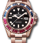 Rolex Everose GMT-Master II 40 Watch - Diamond Lugs - Diamond Sapphire Emerald Bezel - Black Dial - Oyster Bracelet - 126755SARU bk