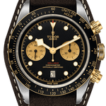 The Black Bay Chrono is the first chronograph in the TUDOR family. Fitted with the Manufacture Caliber MT5813, this powerful style conveys the essence of Black Bay design through hallmark characteristics including angular Snowflake hands and an unprotected yellow gold winding crown. This model is rendered in steel with a fixed gold bezel for a modern yet elegant touch. Gold marking and accents make a statement on its black, domed dial.
