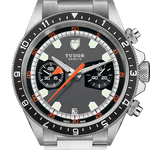 The Heritage Chrono demonstrates the original shape and proportions of the TUDOR Oysterdate Chronograph from the early 1970s. Updated with modern design details, this model features a gray and black dial with a steel bracelet. Impressive functionality such as a dual time zone display, rotatable 12-hour graduated steel bezel and 45-minute totalizer ensure ultimate precision.