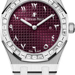 18-carat white gold case, 18-carat white gold bezel set with baguette-cut diamonds, glareproofed sapphire crystal and caseback.