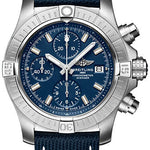 43.00 mm stainless steel case, 16.43 mm thick, cambered sapphire crystal with glareproof treatment on both sides, blue dial, Breitling 13 self-winding movement, approximately approx. 48 hrs of power reserve, blue calfskin leather strap, pushbutton folding buckle. Water resistant to 300 m (1,000 ft).