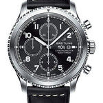 Breitling Aviator 8 Chronograph 43 Watch - Steel Case - Black Dial - Black Leather Strap - A13314101B1X1