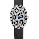 Cartier Mini Baignoire Panther Spots Watch - White Gold Diamond Case - Diamond Dial - Dark Gray Fabric Strap - HPI00703