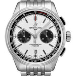42.00 mm stainless steel case, 13.65 mm thick, sapphire crystal back, non screw-locked crown with two gaskets, cambered sapphire crystal with glareproof treatment on both sides, silver dial, Breitling 01 self-winding movement, approximately 70 hours of power reserve, steel bracelet navitimer. Water resistant to 100 m (330 ft).