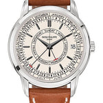 40 mm steel case, 10.79 mm thick, sapphire-crystal back, silvery opaline dial with blackened gold applied hour markers, caliber 26-330 S C J SE self-winding movement with day and week number by hands, date in an aperture, sweep seconds hand, approximately 35-45 hours of power reserve, light brown calfskin strap, prong buckle. Water resistant to 30 m.