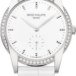Patek Philippe Ladies Calatrava 33mm White Hobnail Index Diamond Bezel White Gold Leather - 7122-200G-001