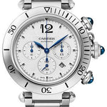 41 mm steel case, fluted crown, silvered flinque dial, caliber 1904-CH MC automatic movement, steel bracelet with smartlink adjustment system, second strap in dark gray alligator leather strap, interchangeable steel deployant buckle. Water resistant to 10 bar (approx 100 meters/330 feet).