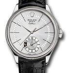 Rolex Cellini Dual Time Watch - White Gold - Silver Dial - Black Leather Strap - 50529 sbk