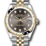 Rolex Steel and Yellow Gold Datejust 31 Watch - Domed Diamond Bezel - Dark Grey Diamond Dial - Jubilee Bracelet - 278343 dkgdj