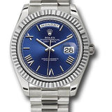 Rolex White Gold Day-Date 40 Watch - Fluted Bezel - Blue Bevelled Roman Dial - President Bracelet - 228239 blrp