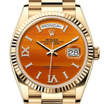 Embrace the fusion of sophistication and innovation, redefine luxury, and make an indelible impression with the Rolex Day-Date 36 Carnelian Dial Gold Fluted Bezel Yellow Gold Watch—a true embodiment of refined taste and distinction.