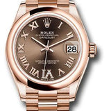 Rolex Everose Gold Datejust 31 Watch - Domed Bezel - Chocolate Diamond Six Dial - President Bracelet - 278245 chodr6p