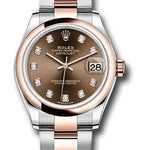 31mm Everose Rolesor case comprised of Oystersteel and 18K Everose gold, screw-down back, screw-down crown with twinlock double waterproofness system, 18K Everose gold domed bezel, scratch-resistant sapphire crystal with cyclops lens over the date, chocolate dial, diamond hour markers, Rolex calibre 2236 perpetual self-winding movement with date at 3 o'clock, approximately 55 hours of power reserve, Eversose Rolesor Oyster bracelet made from a combination of steel and 18K everose gold with flat three-piece links, folding Oysterclasp buckle with Easylink 5mm comfort extension link. Waterproof to 100 meters. Baselworld 2019 release.