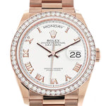 Experience the epitome of timeless elegance with the Rolex Day-Date 36 White Dial Diamond Bezel 18K Everose Gold President Watch, an embodiment of sophistication and luxury.